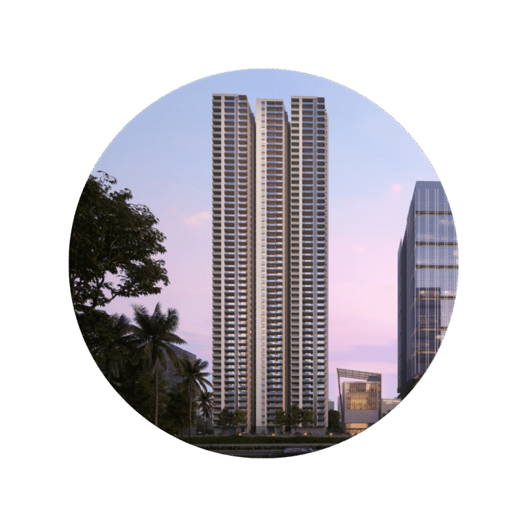 Choose from expansive 3 & 4 BHK Vastu-compliant apartments (2,765 to 4,205 sq. ft.), having ultimate comfort. The twin G+52-floor towers feature spacious balconies with stunning views